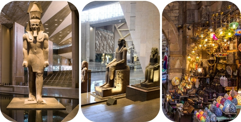Na het ontbijtbuffet bezoeken we het Egyptisch Museum (GEM), waar we onder meer het gouden masker van Toetanchamon en de mummies van farao’s zoals Ramses II bewonderen.