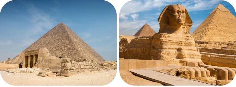 Na de lunch verkennen we Gizeh, bekend om de Sfinx en de piramiden: de Grote Piramide van Cheops,