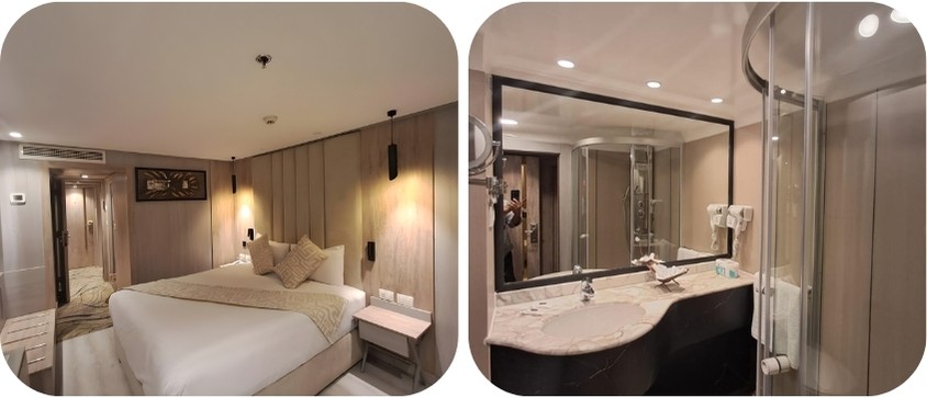 Bij aankomst checken we in op ons cruiseschip, ons thuis voor de komende zeven nachten,