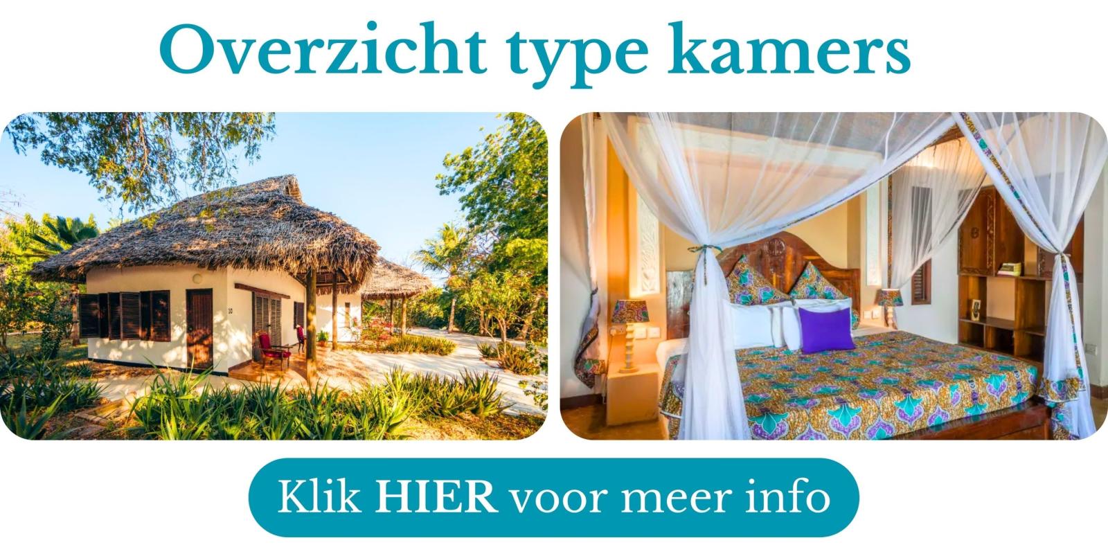 Er zijn 26 bungalows in ‘Zanzibari’ stijl, waarvan 20 Deluxe kamers, 4 Luxe Suites