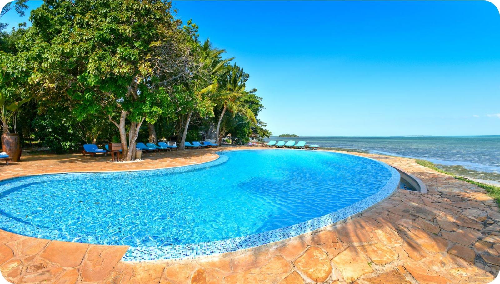 Het bevindt zich aan het uiteinde van het schiereiland, op één van de meest afgelegen stranden van Zanzibar, met uitzicht op de Menai Bay.