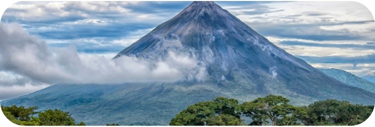 Vervolgens gaan we richting het noordelijke vlakte, bekend om zijn tropische fruit- en citrusplantages, met op de achtergrond de imposante kegel van de Arenal-vulkaan.