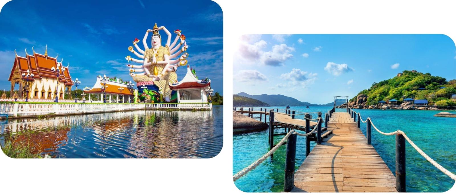 Bij Nathon of Bangrak Pier dobberen vissersbootjes en kraampjes bieden tropisch fruit. Ko Samui combineert rust en avontuur, met bezienswaardigheden zoals de Big Buddha-tempel en adembenemende uitzichten.