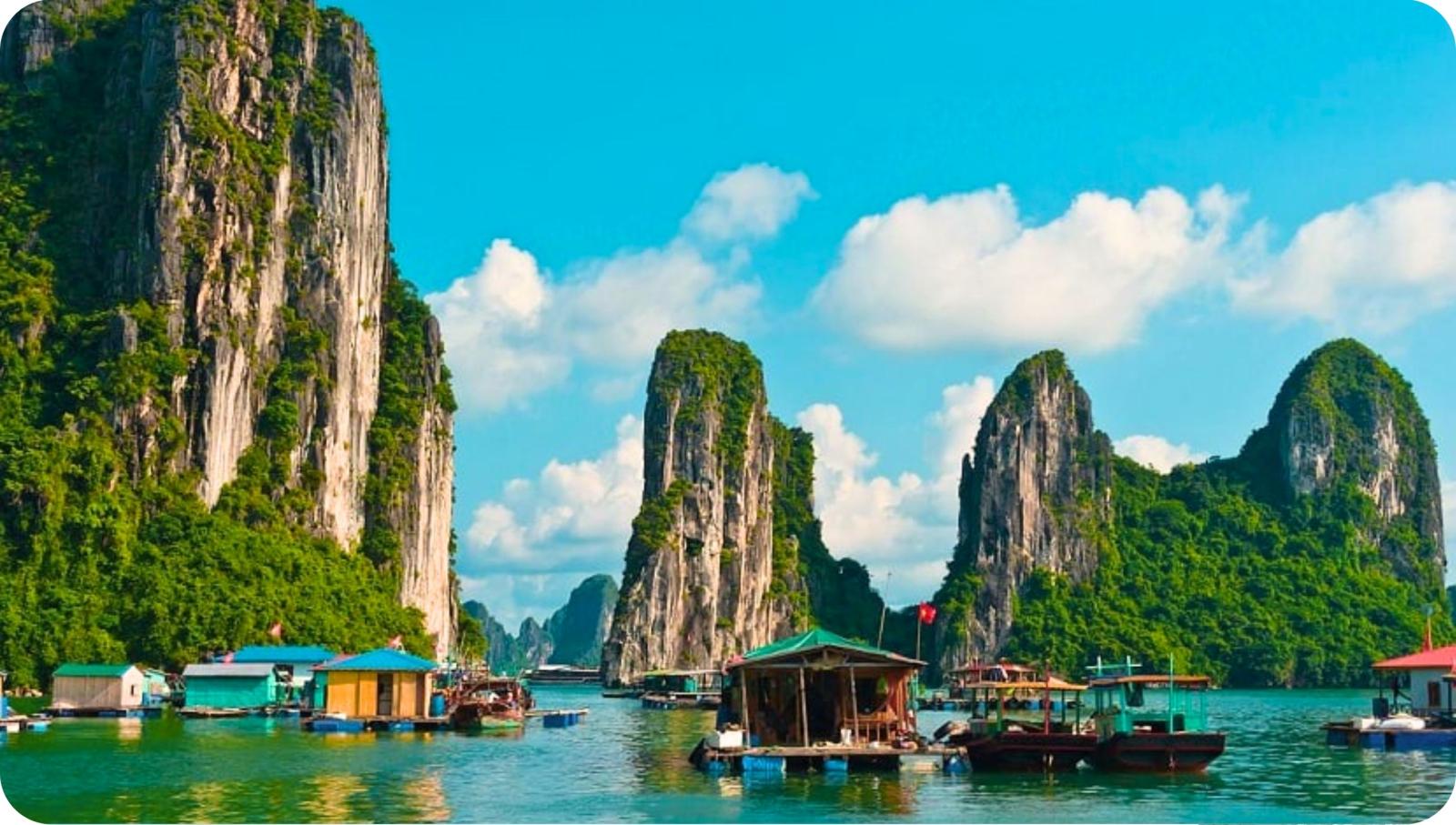 Halong Bay is een van de meest iconische en adembenemende plekken in Vietnam en staat bekend om zijn duizenden kalkstenen eilanden en dramatische rotsformaties die oprijzen uit het turquoise water.