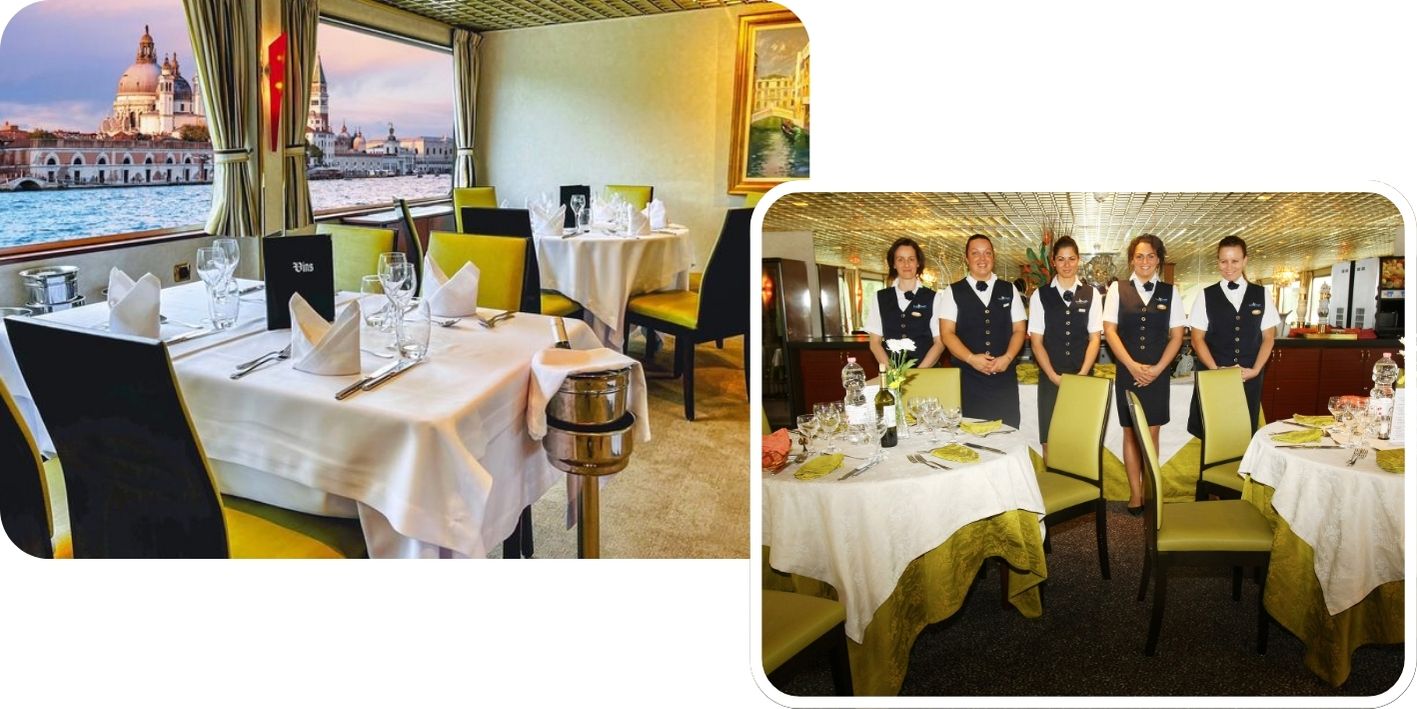 ’s Avonds staat er een feestelijk gala-diner aan boord gepland, met entertainment en een verfijnd menu, zodat je de reis in stijl afsluit.