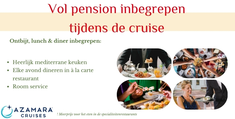 Verse ingrediënten, zorgvuldige bereiding en een gevarieerd menu. Azamara biedt zes unieke eetgelegenheden, inclusief roomservice.