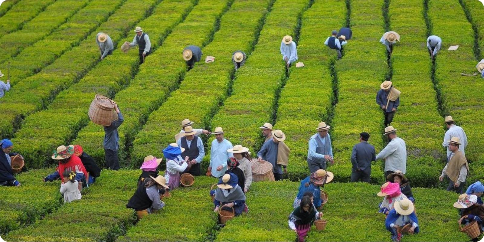 U kan hier vrij rondwandelen tussen de velden met theeplanten.