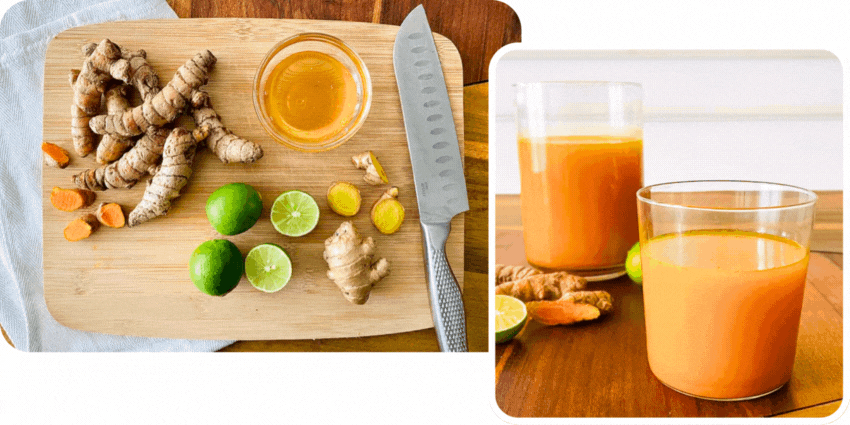 een traditioneel, kruidig drankje op basis van kurkuma, gember en andere natuurlijke ingrediënten.