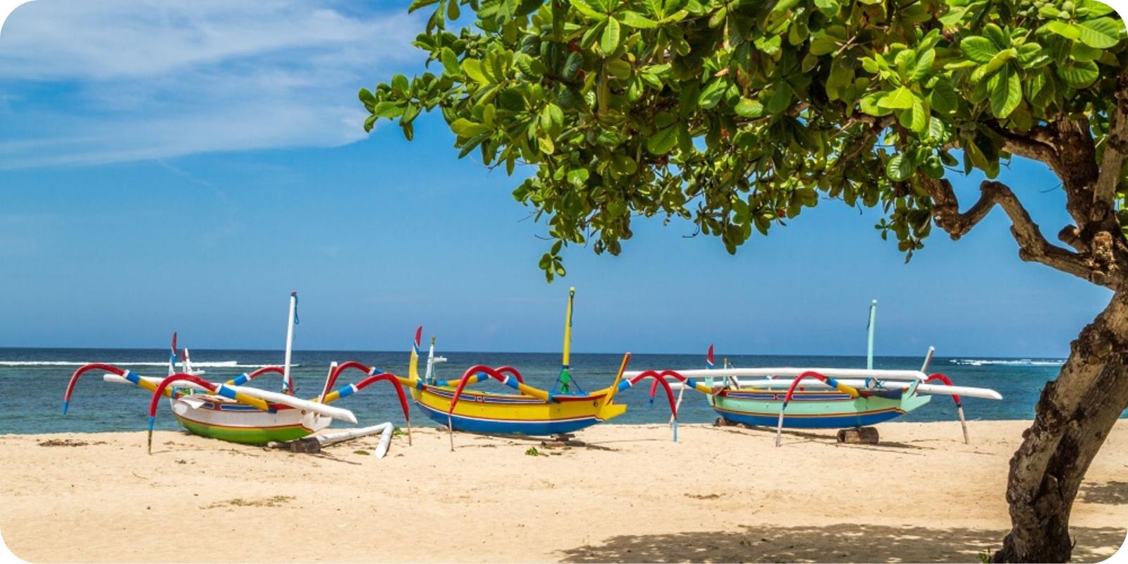 Langs de kustlijnen van Bali zie je ze al van ver liggen: de vrolijk gekleurde jukungs, traditionele Balinese
