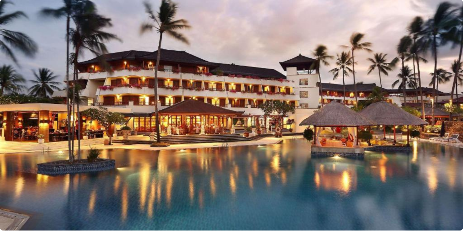 We overnachten in het mooie Nusa Dua Beach hotel***** en vullen de avond vrij in.