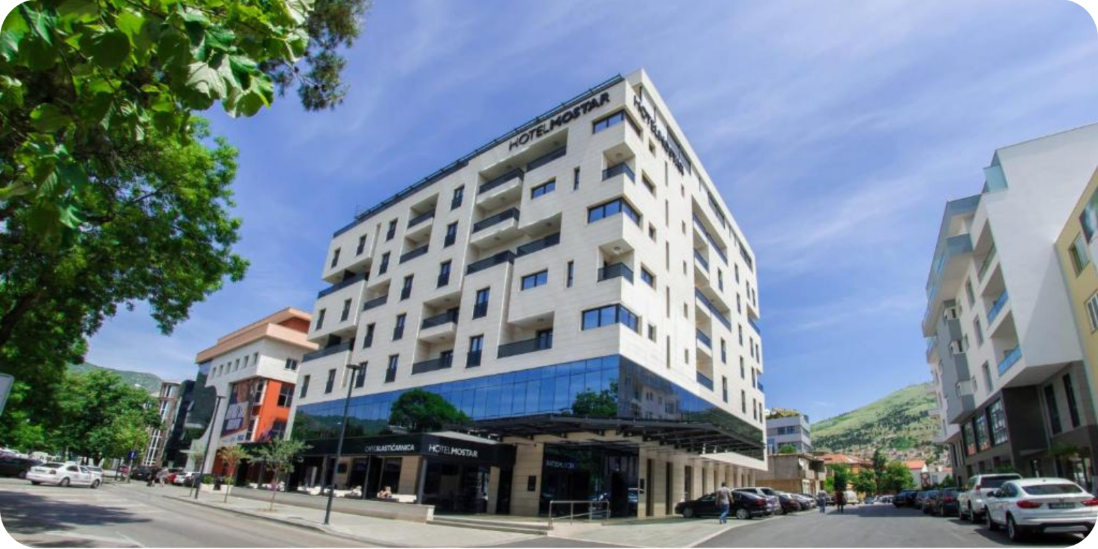 Aangekomen in Mostar inchecken in hotel Mostar.
