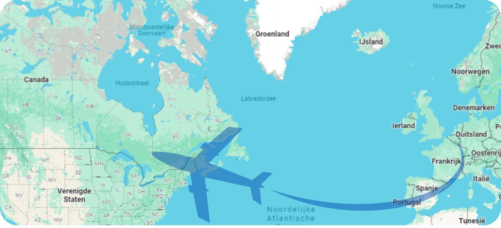 Terugvlucht vanuit Monreal naar Brussel vertrek 17:15u (lokale tijd) voorziene aankomst 06:20u (+1)