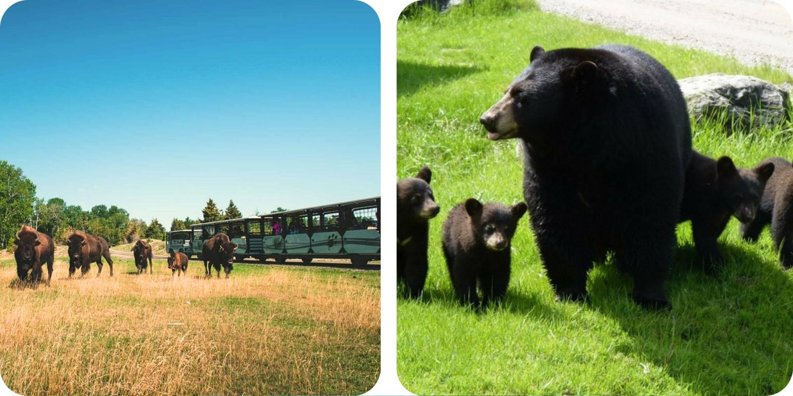 Wolven, bizons, muskusossen, zwarte beren en elanden zijn enkele van de vrij rondlopende dieren.