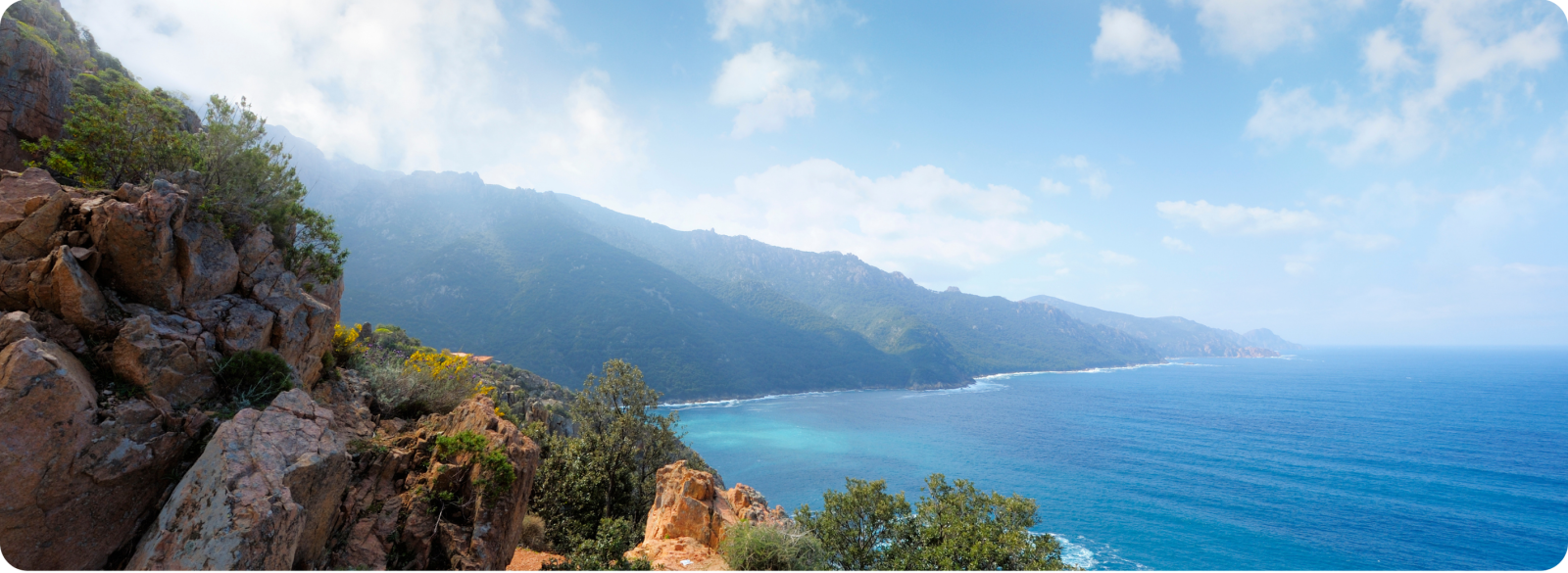Het is een opeenvolging van met maquis bedekte bergen die zich in de zee storten.