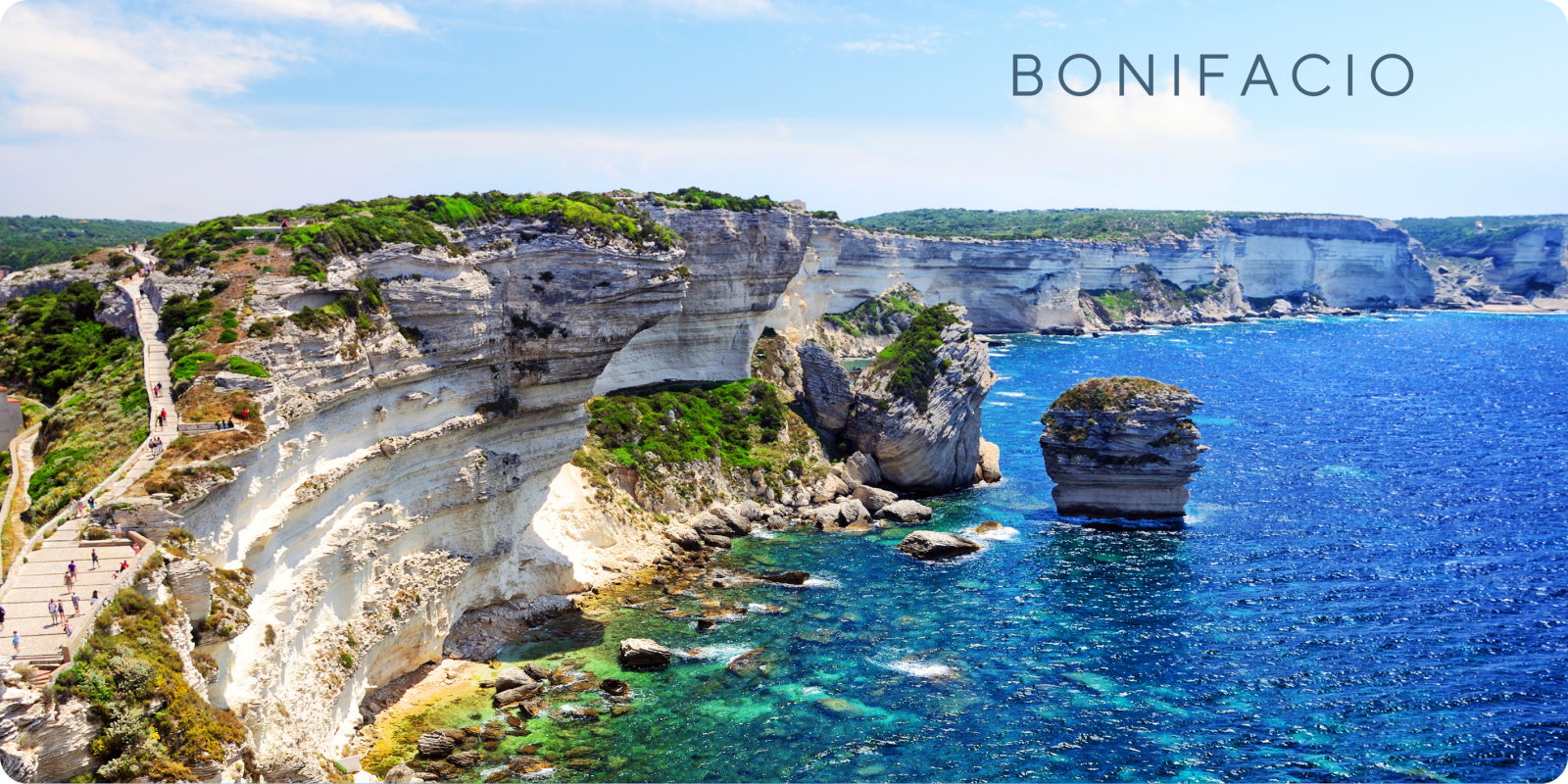 Bonifacio staat bekend om haar kalkstenenkliffen en de pittoreske “zandkorrel”.