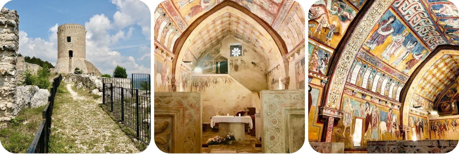 Het wordt omringd door prachtige, kleurrijke fresco’s in de stijl van de zogenaamde scuola abruzzese, uit de dertiende eeuw.
