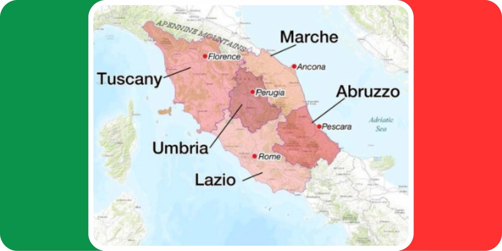de zachtglooiende heuvels van het binnenland en de spectaculaire bergtoppen van de Apennijnen.