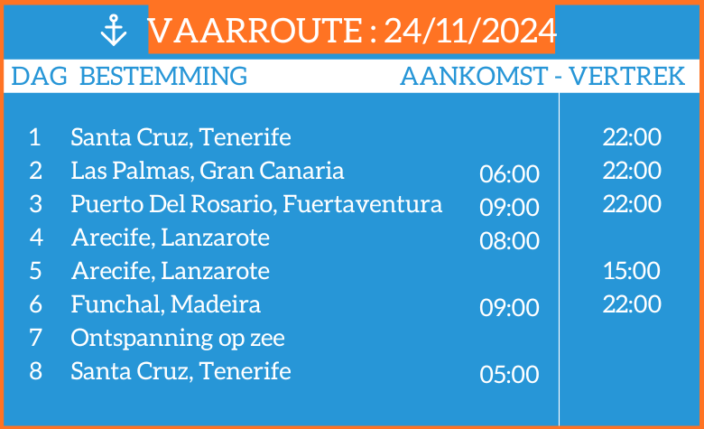 *** OPGELET: enkel voor afreizen in december 2024 en januari 2025 (zie vaarroutes hogerop) ***