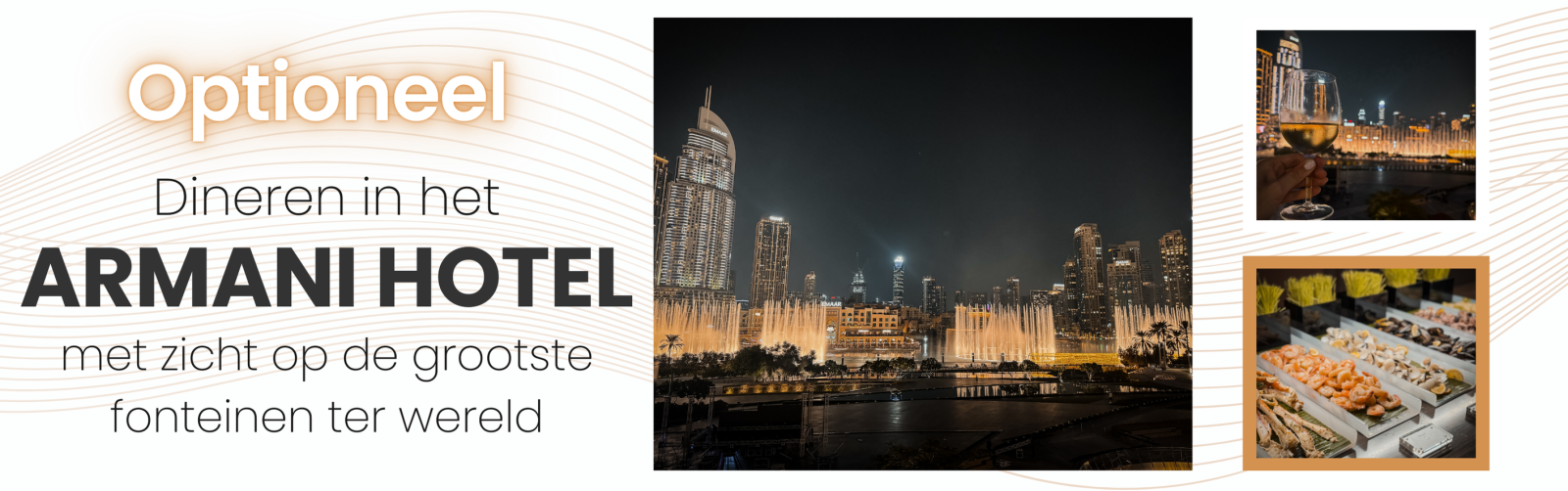 Optioneel voorzien we een culinaire afsluiter op de meest magische plaats van de stad, in het unieke en wereldberoemde Armani hotel.