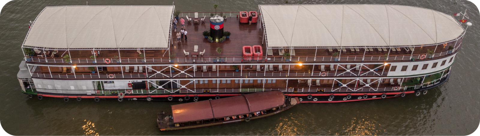 Na de lunch aan boord vaart het schip naar Con Phuoc voor de excursie aan wal.