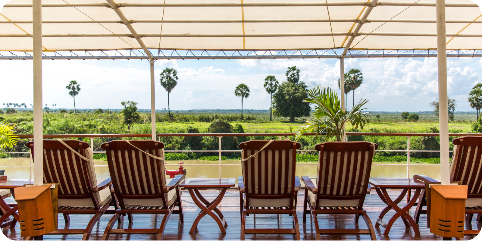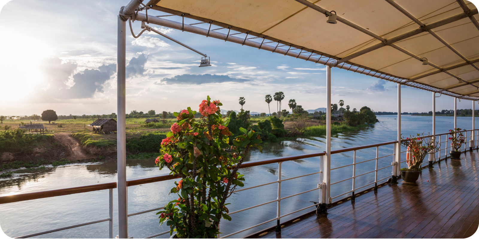 Luxeschip met veel open wanden waardoor U te allen tijde de fascinerende wereld van de rivier kan zien.