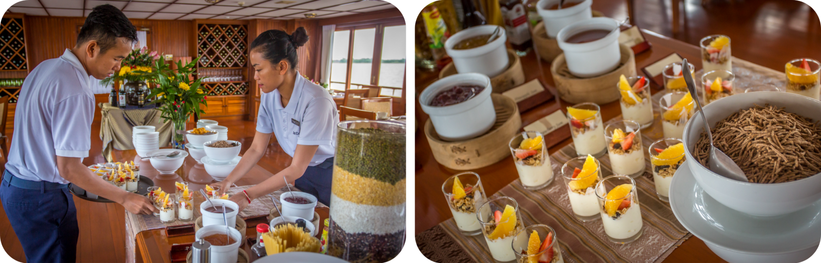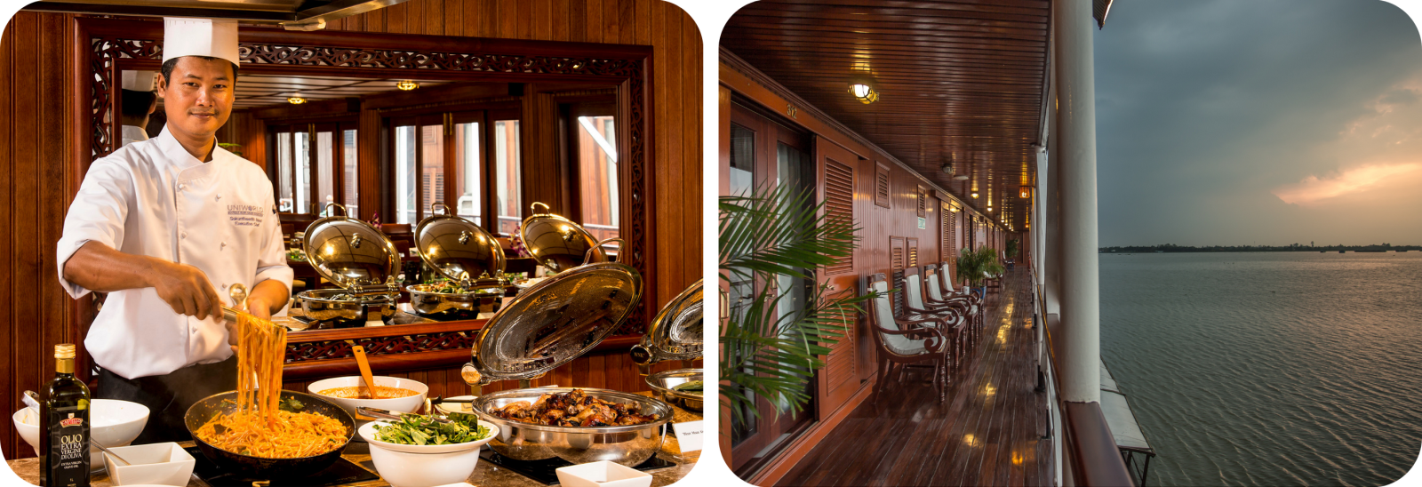 Uniek : bovenop het bijzonder lekkere volpension zijn tijdens Uw Mekong-cruise ook verschillende dranken inbegrepen !