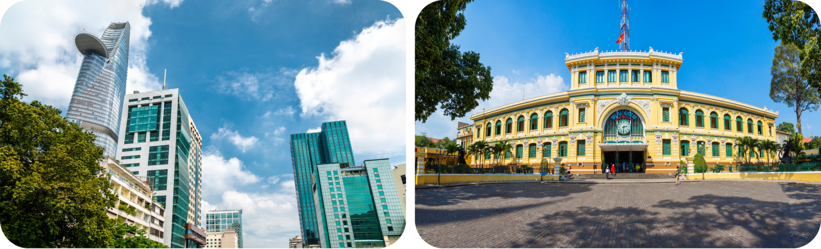 Lunch in een restaurant in Saigon. In de namiddag, panoramische stadstour langsheen de grootste lanen van het stadscentrum,