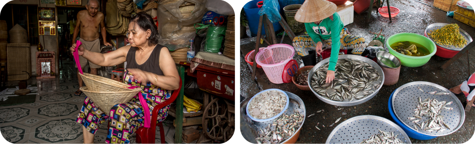 waar we lokale ambachtslieden bezoeken die op traditionele wijze bamboemanden weven.