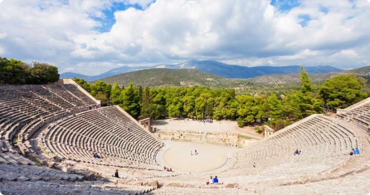 Epidaurus ligt verscholen tussen groene heuvels en het glinsterende blauw van de Argolische Golf,