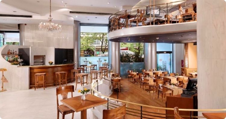 Langs de boulevard nodigen terrasjes uit om het Griekse leven in je op te nemen, met de zee altijd binnen handbereik.