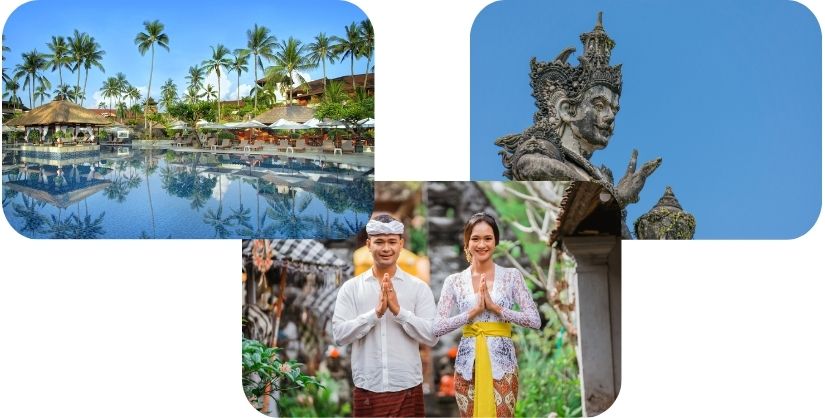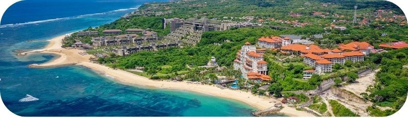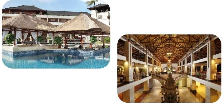 Het Nusa Dua Beach Hotel & Spa is een vijfsterrenresort dat bekendstaat om zijn authentieke Balinese sfeer, koninklijke uitstraling en uitstekende service. Het resort is gebouwd in traditionele paleisstijl en heeft al meerdere staatshoofden en beroemdheden mogen ontvangen.