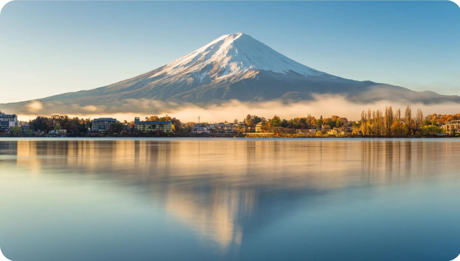 Het beste uitzicht op de berg krijgen we vanaf het Kawaguchimeer,