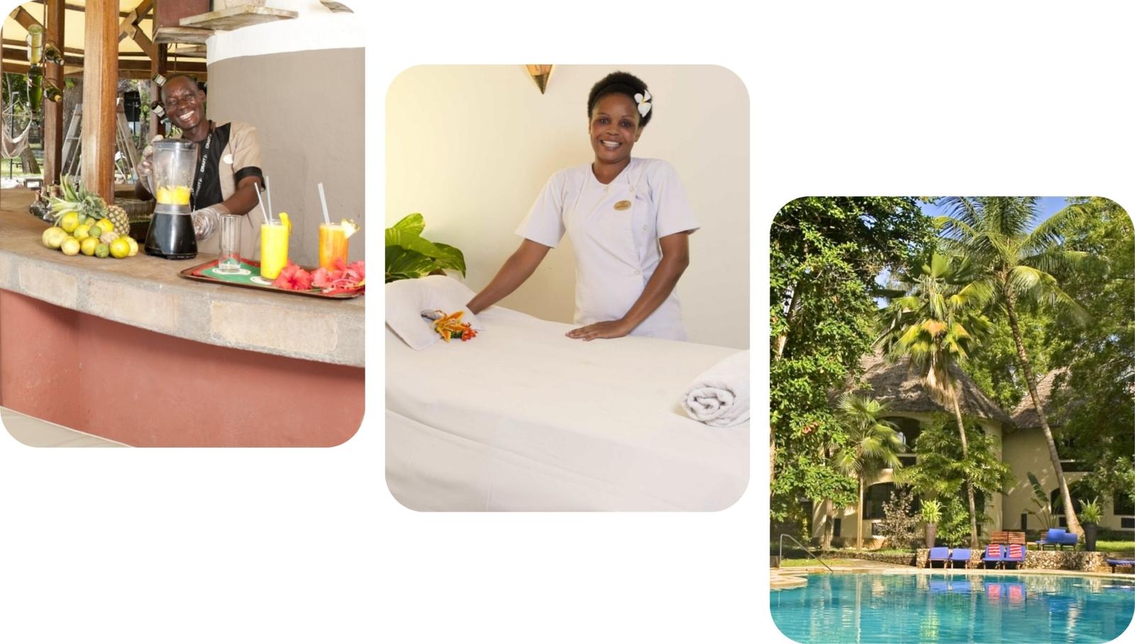 Severin Sea Lodge ligt aan de Bamburi strand en is omgeven door een weelderige tuin met