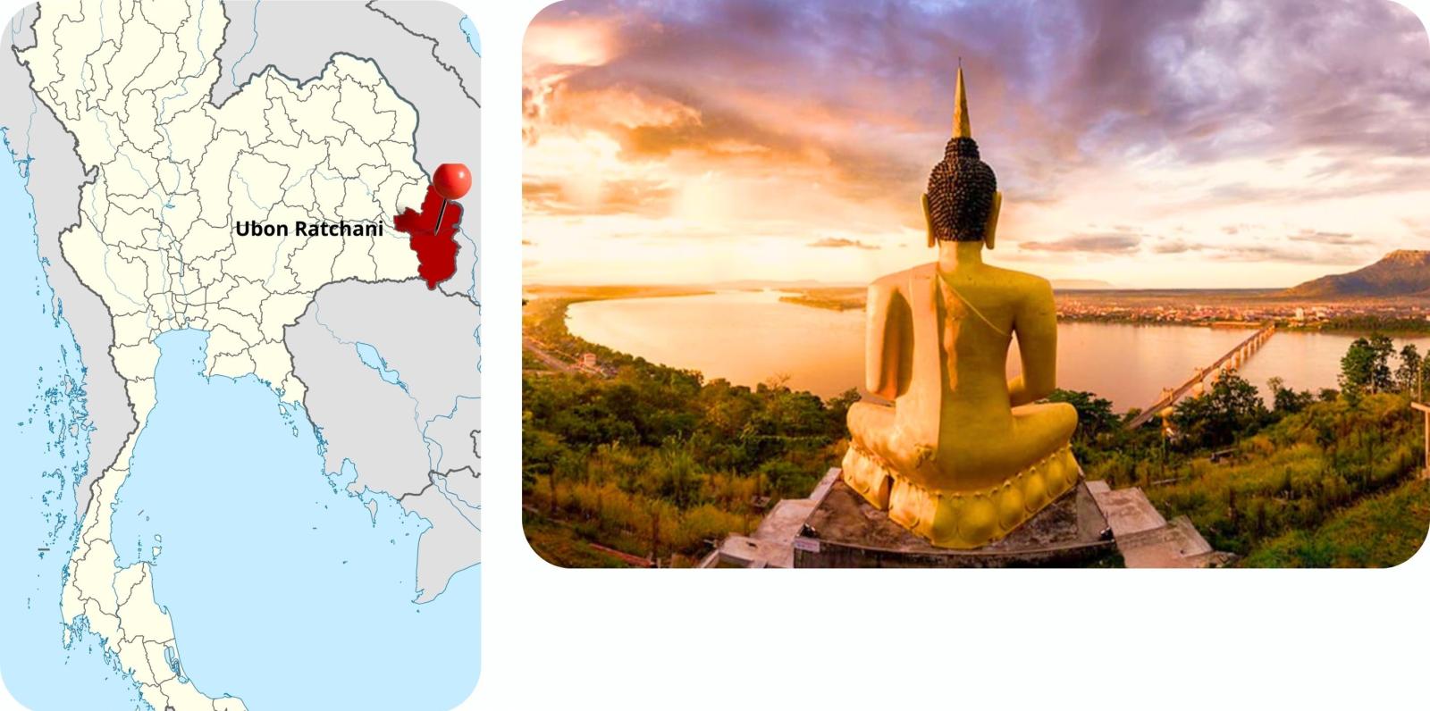 Vlucht van Bangkok naar Ubon Ratchani (Thailand). Hier ontmoeten we ons Laotiaans team en begeven we ons naar