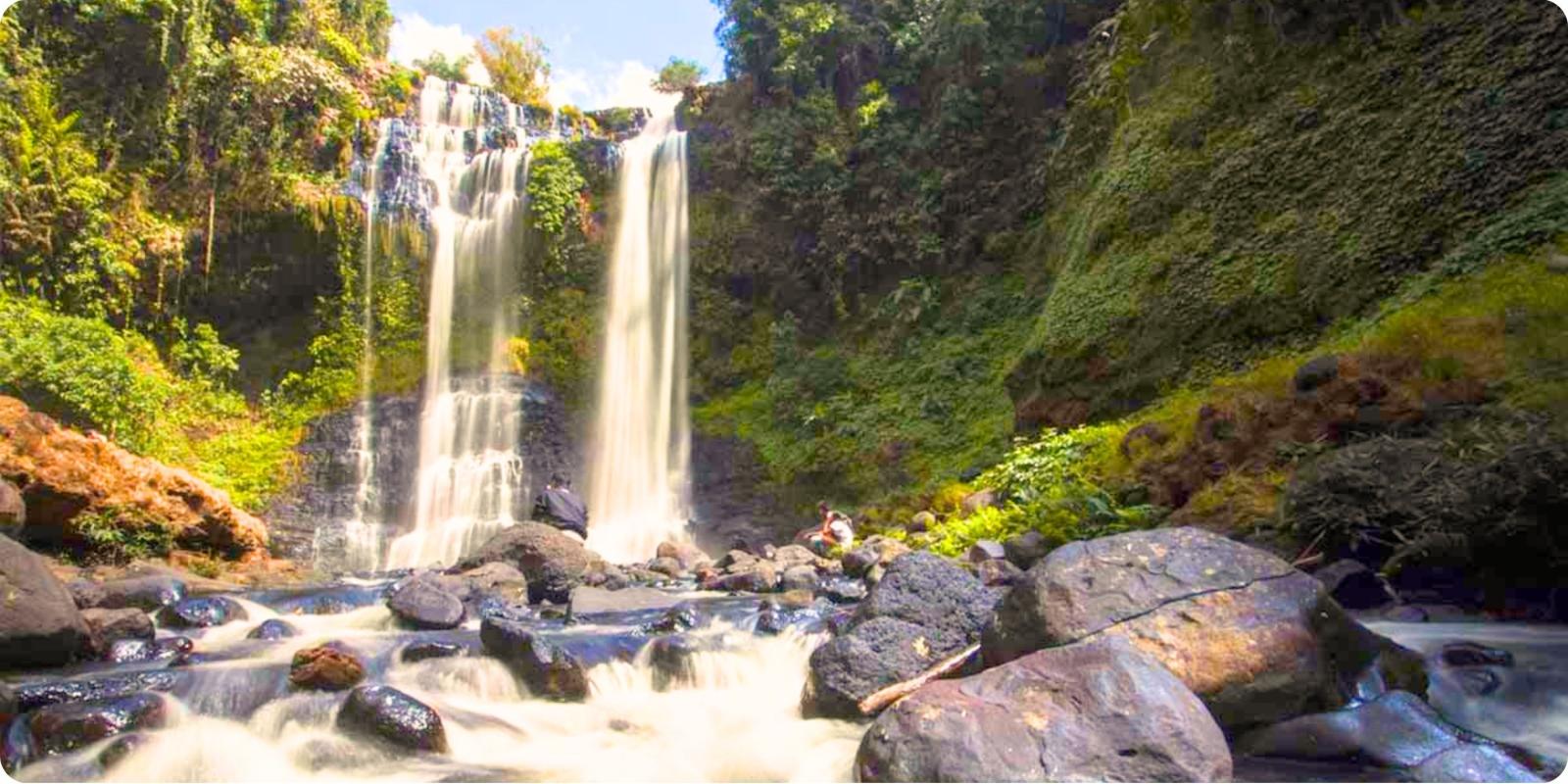 de Cambodjaanse grens. De lokale bevolking vereert de watervallen omdat ze fungeren als een val voor boze