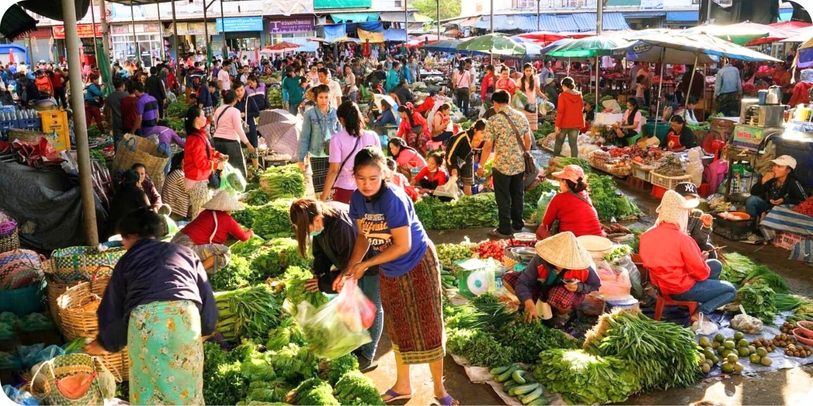 terwijl ’s avonds de lokale bevolking uit de naburige dorpen naar de avondmarkt trekt.