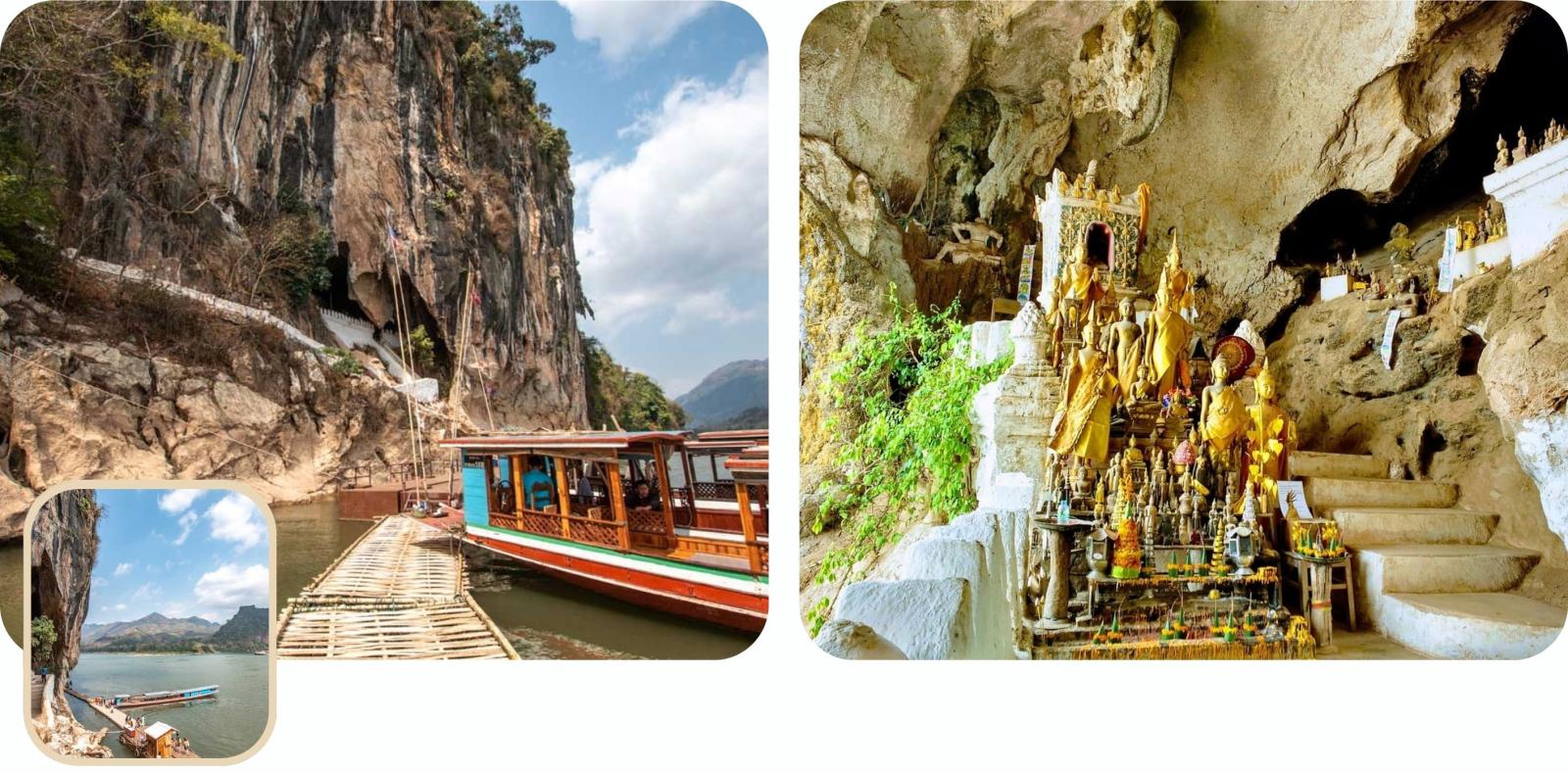 de Nam Ou in de Mekong . Hier bevinden zich de Pak Ou grotten aan een indrukwekkend kalkstenen klif, genaamd
