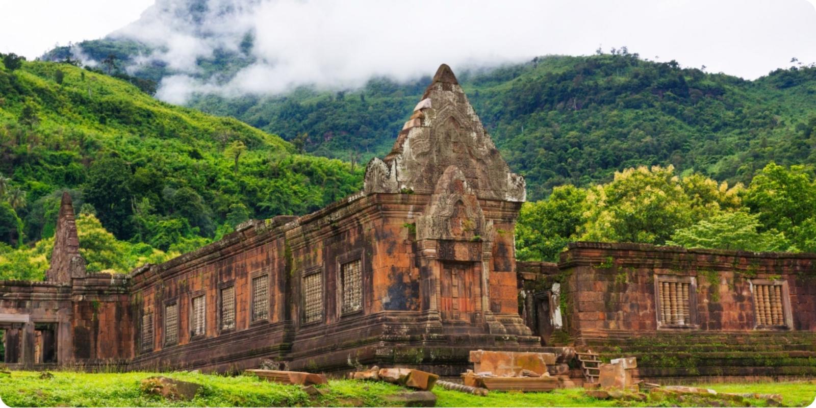 een spectaculaire pre-Angkorische tempel temidden van de rijstvelden en waterwegen van Zuid-Laos. Deze site