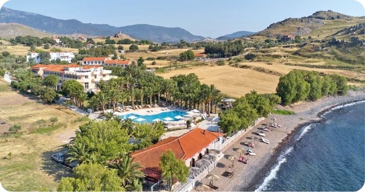 Hotel Aphrodite ligt aan de noordkust van Lesbos, net buiten het pittoreske plaatsje Molyvos.