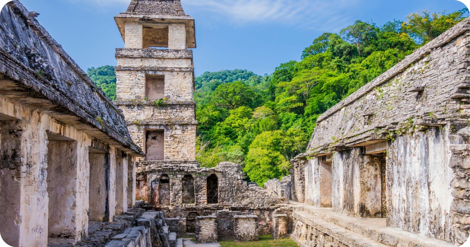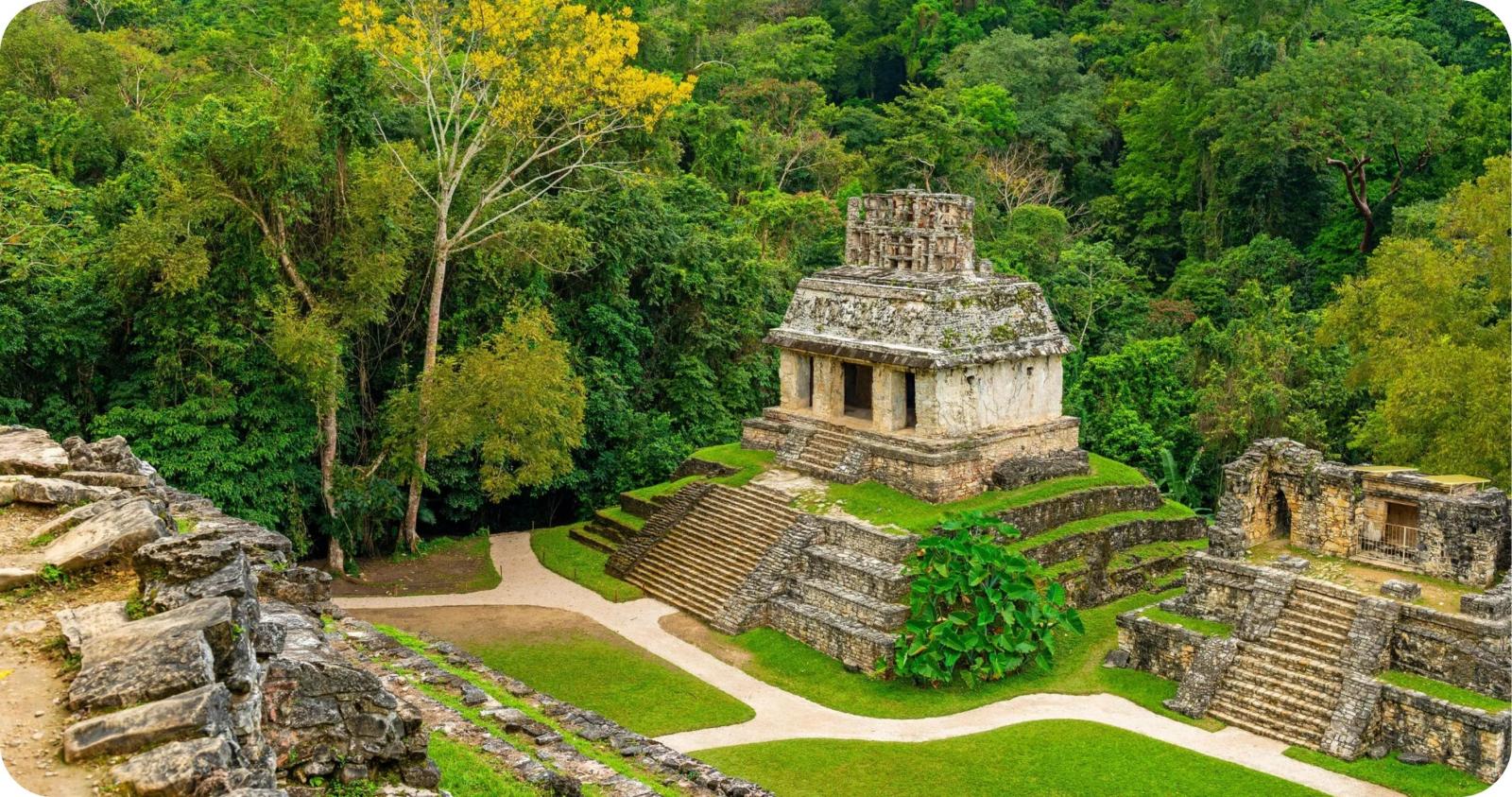 Verken de mystieke ruïnes van Palenque, waar de jungle fluistert tussen eeuwenoude tempels en koninklijke graven.