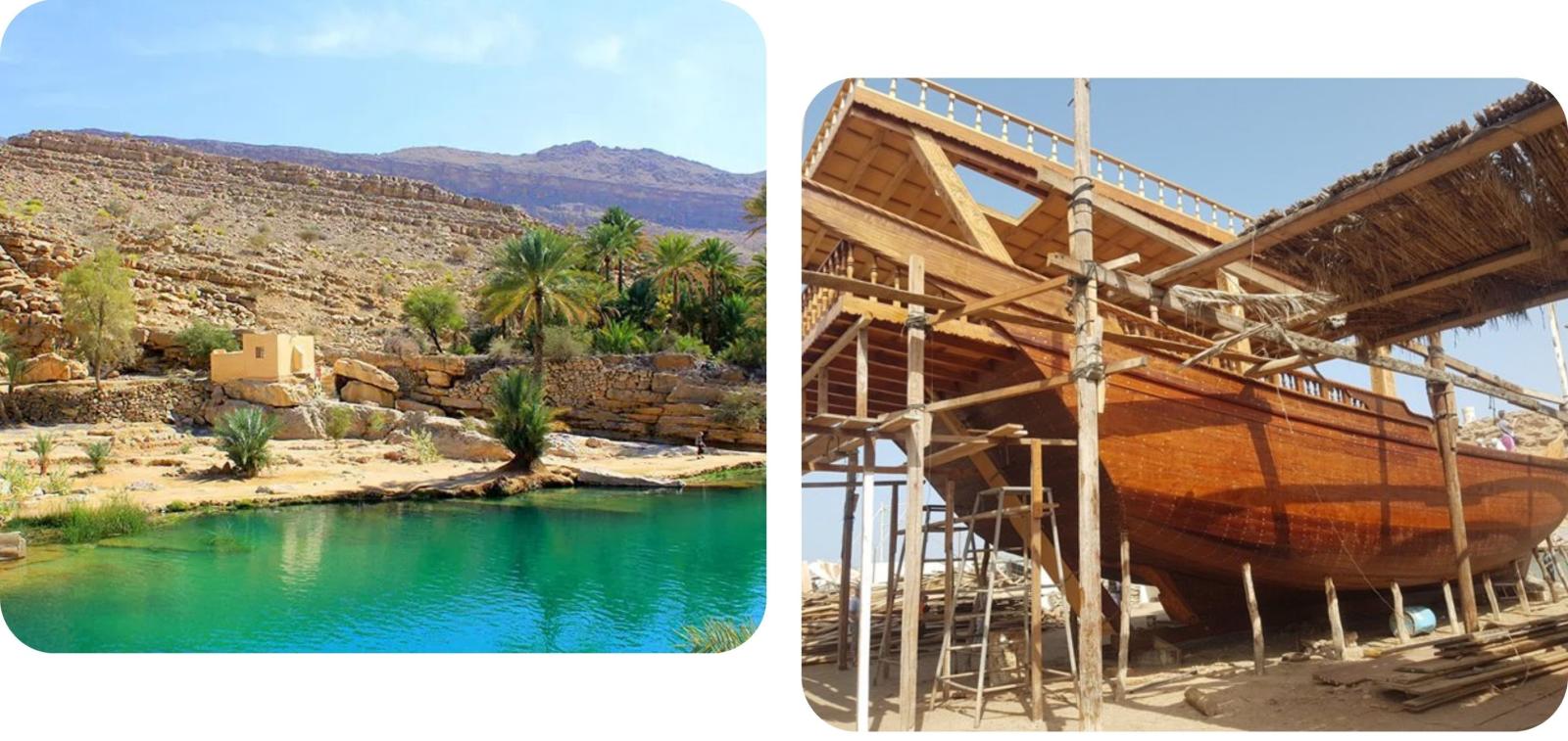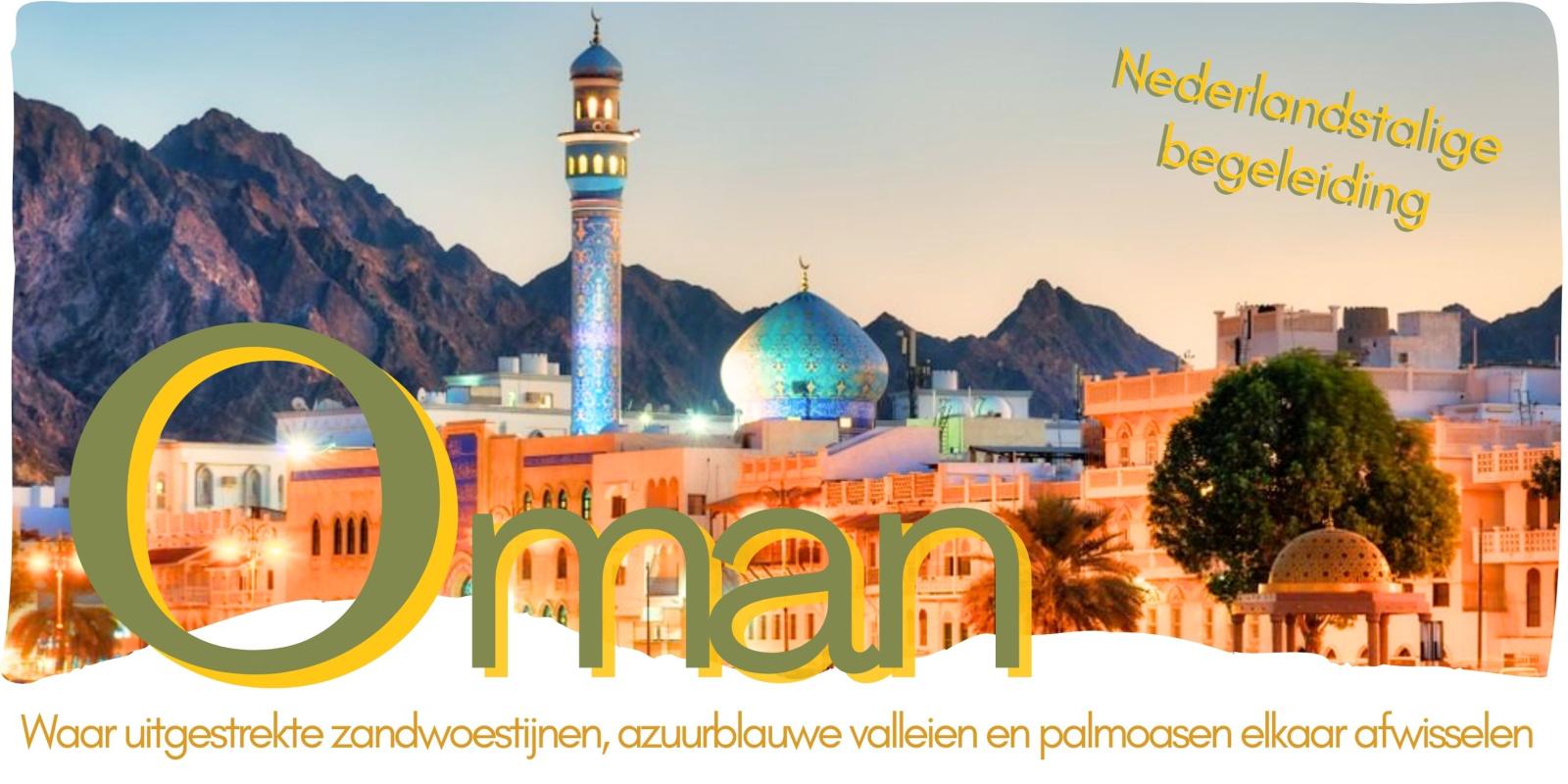 Verder naar Oman, een nieuwkomer in de toeristische wereld, waar uitgestrekte zandwoestijnen, azuurblauwe valleien