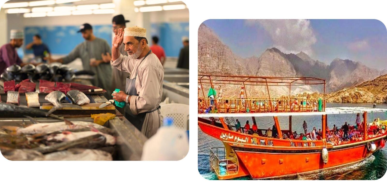 De dag begint met een bezoek aan de Mutrah Vismarkt, waar we de drukke bedrijvigheid van de visserijhandel in Muscat ervaren in dit iconische gebouw.