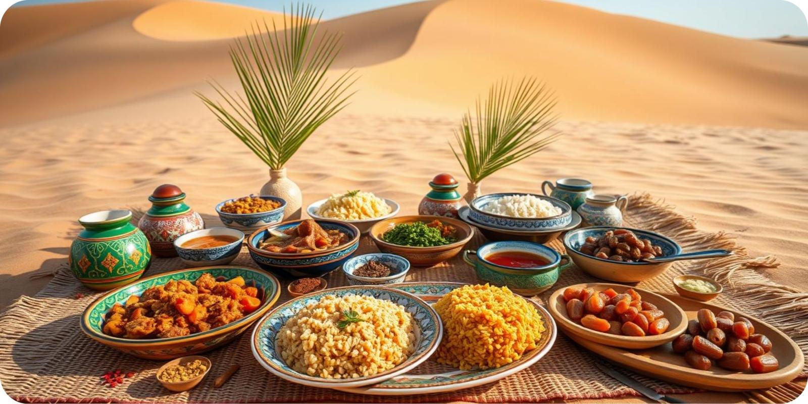Bij aankomst in Al Mintarib stappen we over op 4X4-jeeps om naar het woestijnkamp Thousand Nights Camp ***** te gaan, waar u incheckt en kunt genieten van een prachtige zonsondergang over de duinen.