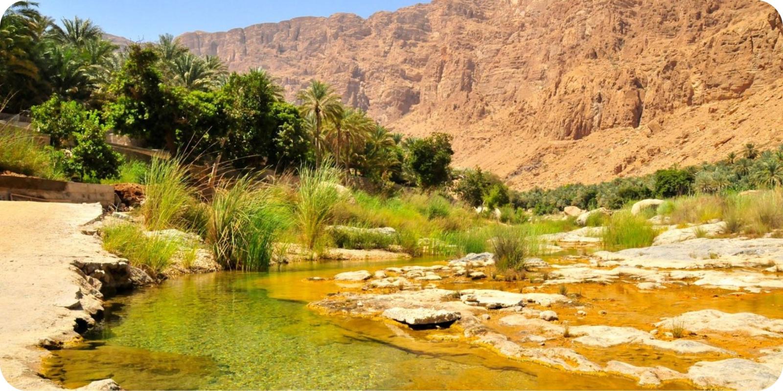 Dit is een van de mooiste wadi’s van Oman, met helderblauwe waterpoelen waar u een verfrissende duik kunt nemen.