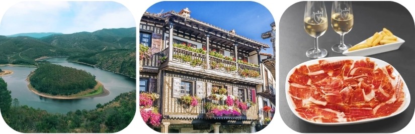 Vandaag rijden we richting Sierra de Francia, een natuurgebied met daarin het middeleeuws dorpje La Alberca, nationaal erfgoed en vermaard om zijn hesp, de Jamón Ibérico. We proeven natuurlijk de lekkere Jamón Ibérico samen met een glaasje rode wijn uit de streek.