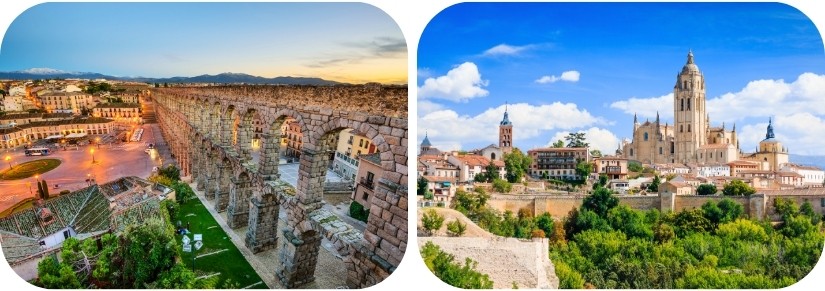 Na een Spaanse lunch verkennen we te voet het Alcázar, de kathedraal en het indrukwekkende granieten aquaduct. Nadien is er vrije tijd in Segovia.