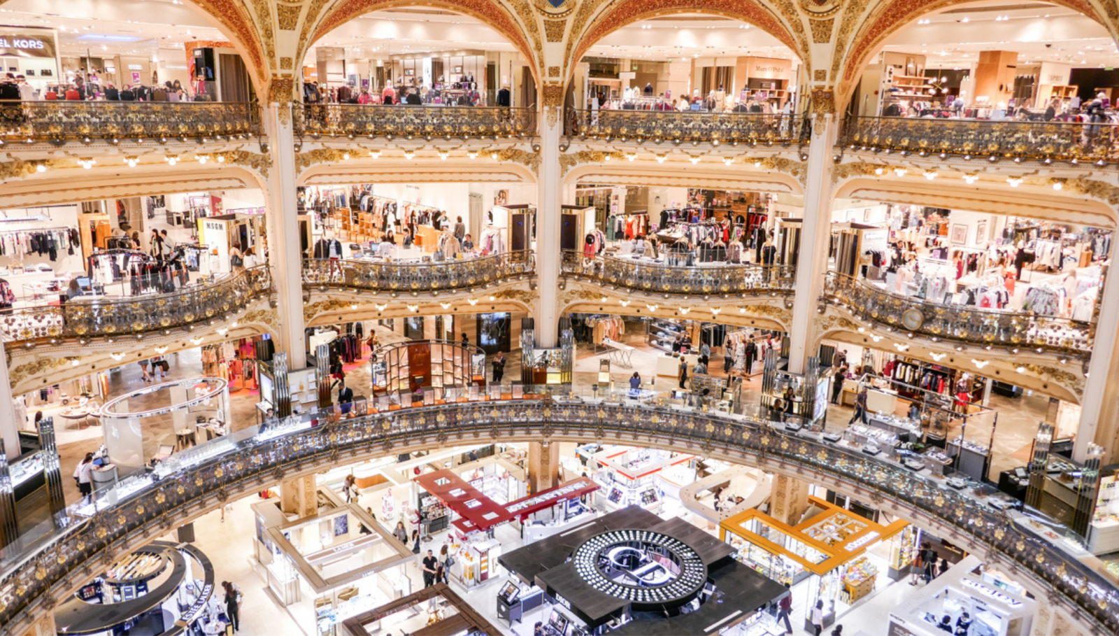 In Parijs zijn niet alleen de beste winkels en ontwerpers te vinden, maar ook wereldberoemde warenhuizen als de Galeries Lafayette.