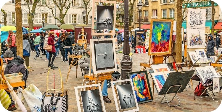 Place du Tertre is het levendige hart van Montmartre, waar kunstenaars hun schildersezels uitstallen
