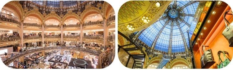 In Parijs zijn niet alleen de beste winkels en ontwerpers te vinden, maar ook wereldberoemde warenhuizen als de Galeries Lafayette.