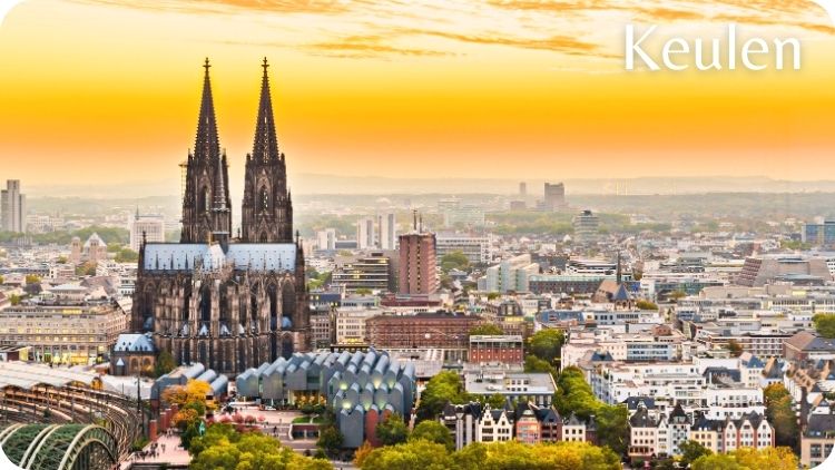 Keulen (Köln in het Duits) is een bruisende stad aan de oevers van de Rijn, in het westen van Duitsland.